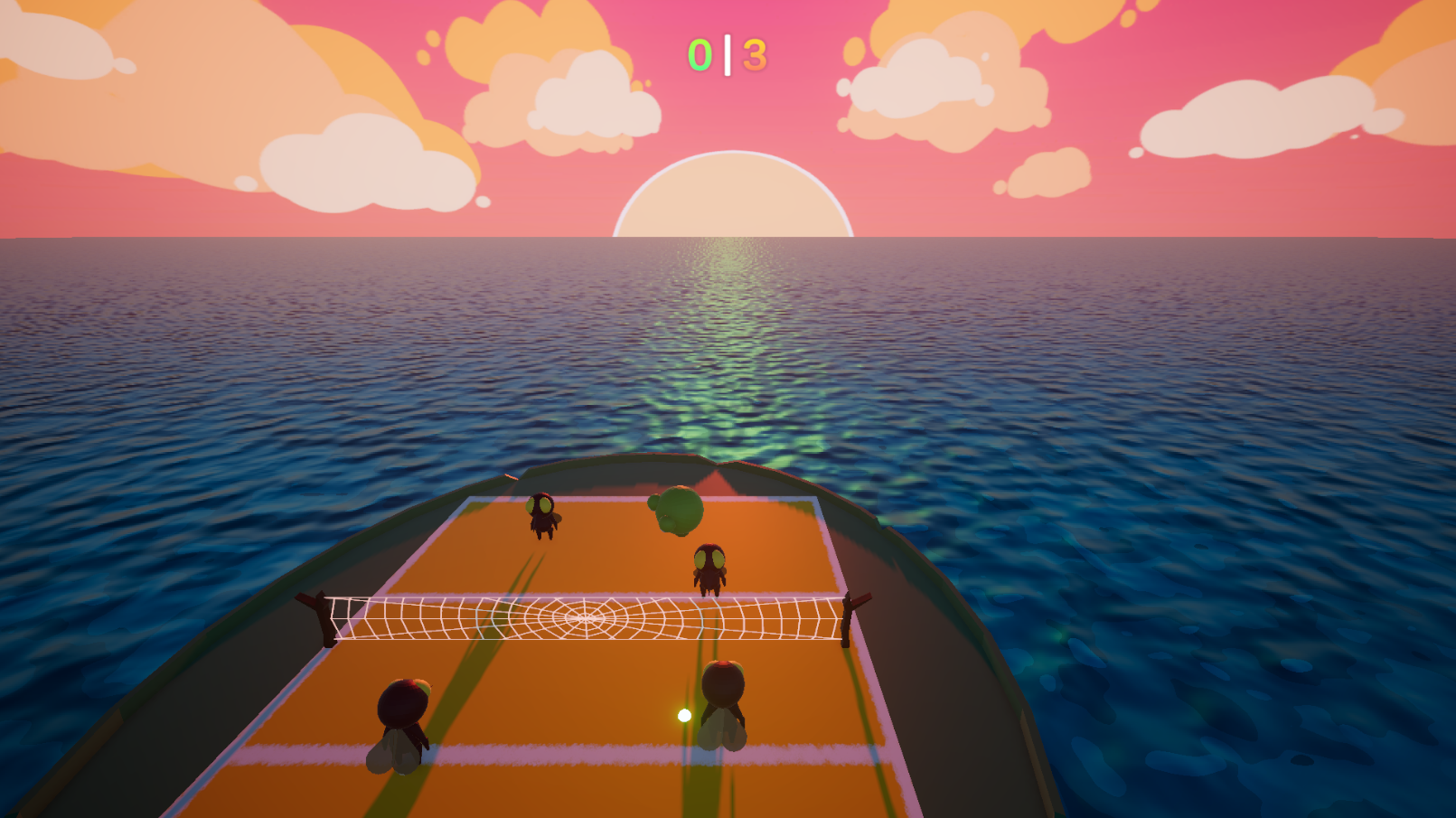 Bump Frog is a single player volleyball game with two units on each side of the net. The player plays as both units on their side of the net, switching between the two by toggling the one they are controlling. The player would have to bump the ball to receive it, switch to the other unit to set it, then switch again to spike it! We are flipping the narrative and the units will be flies and the ball would be a frog.